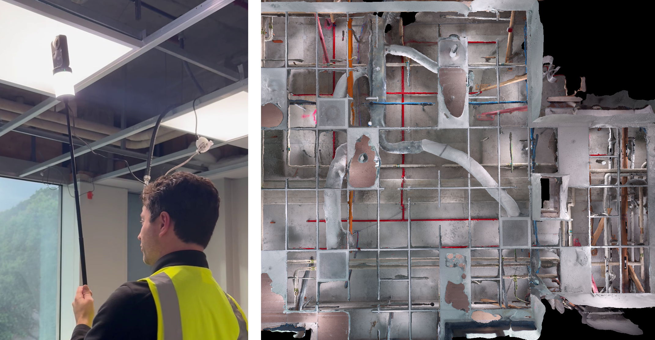 Using lightweight 360 cameras for data capture makes it easy to reach ceiling voids, manholes and other difficult to reach spaces.